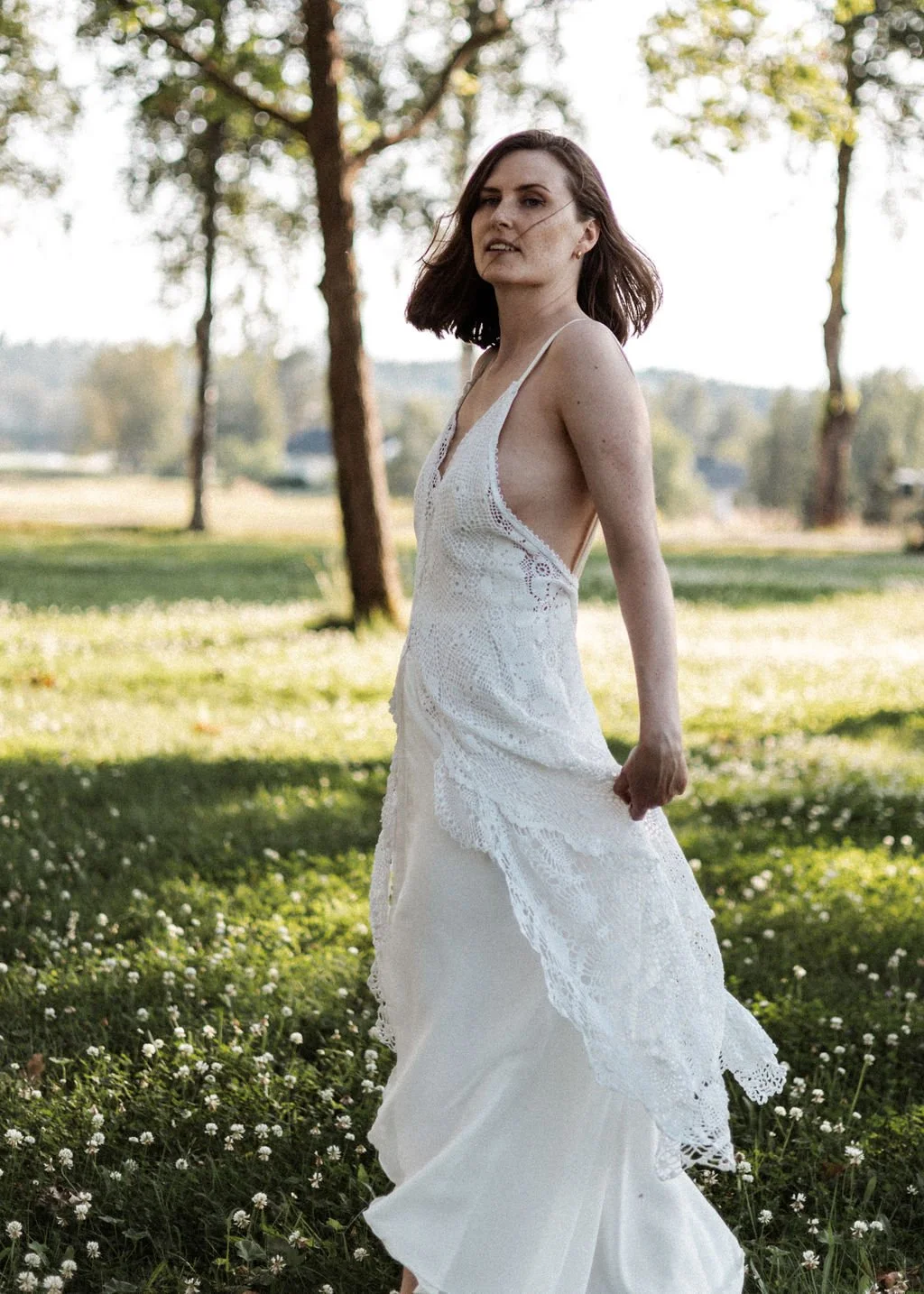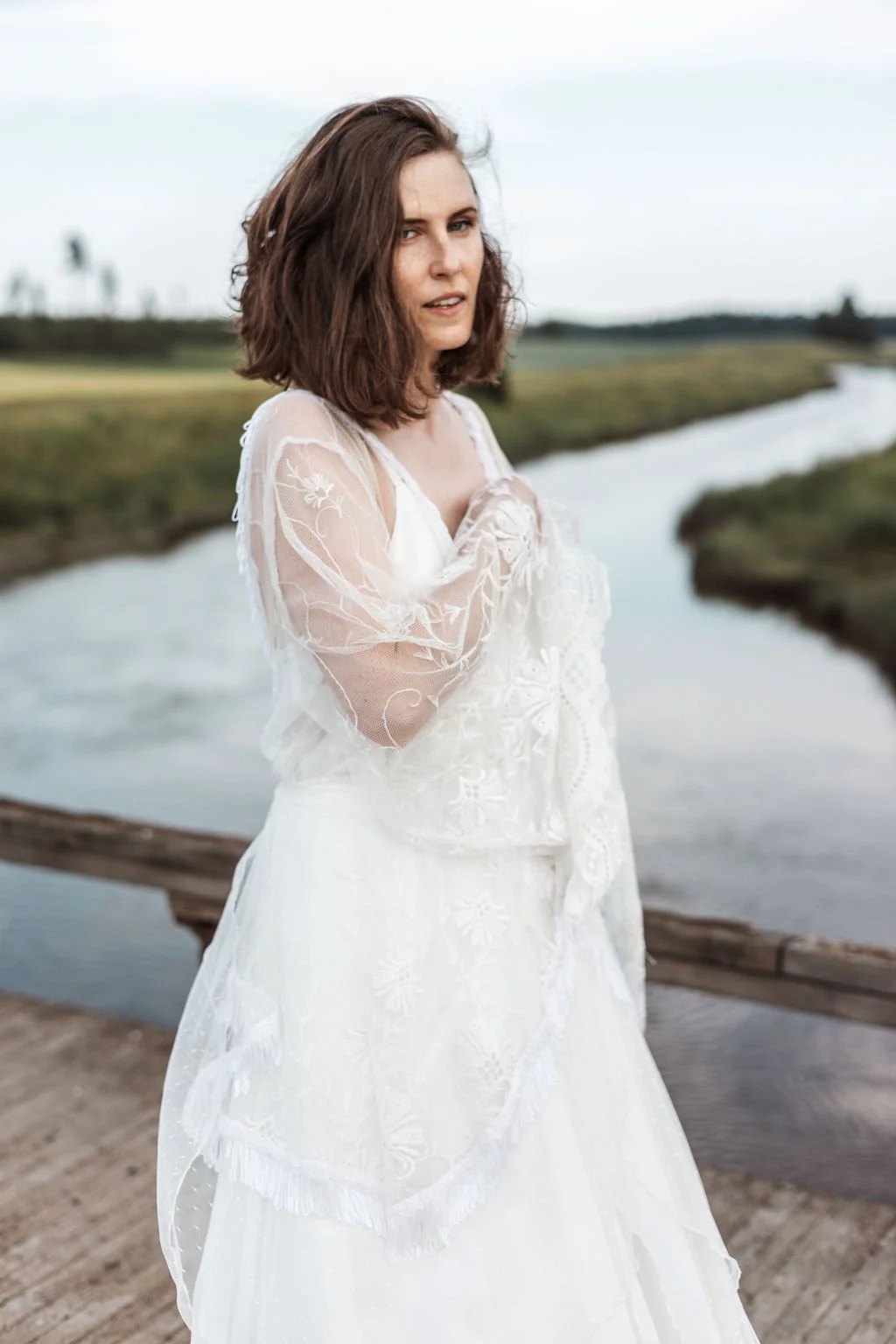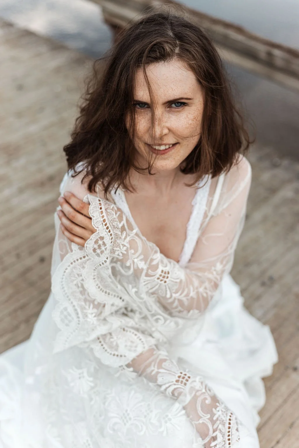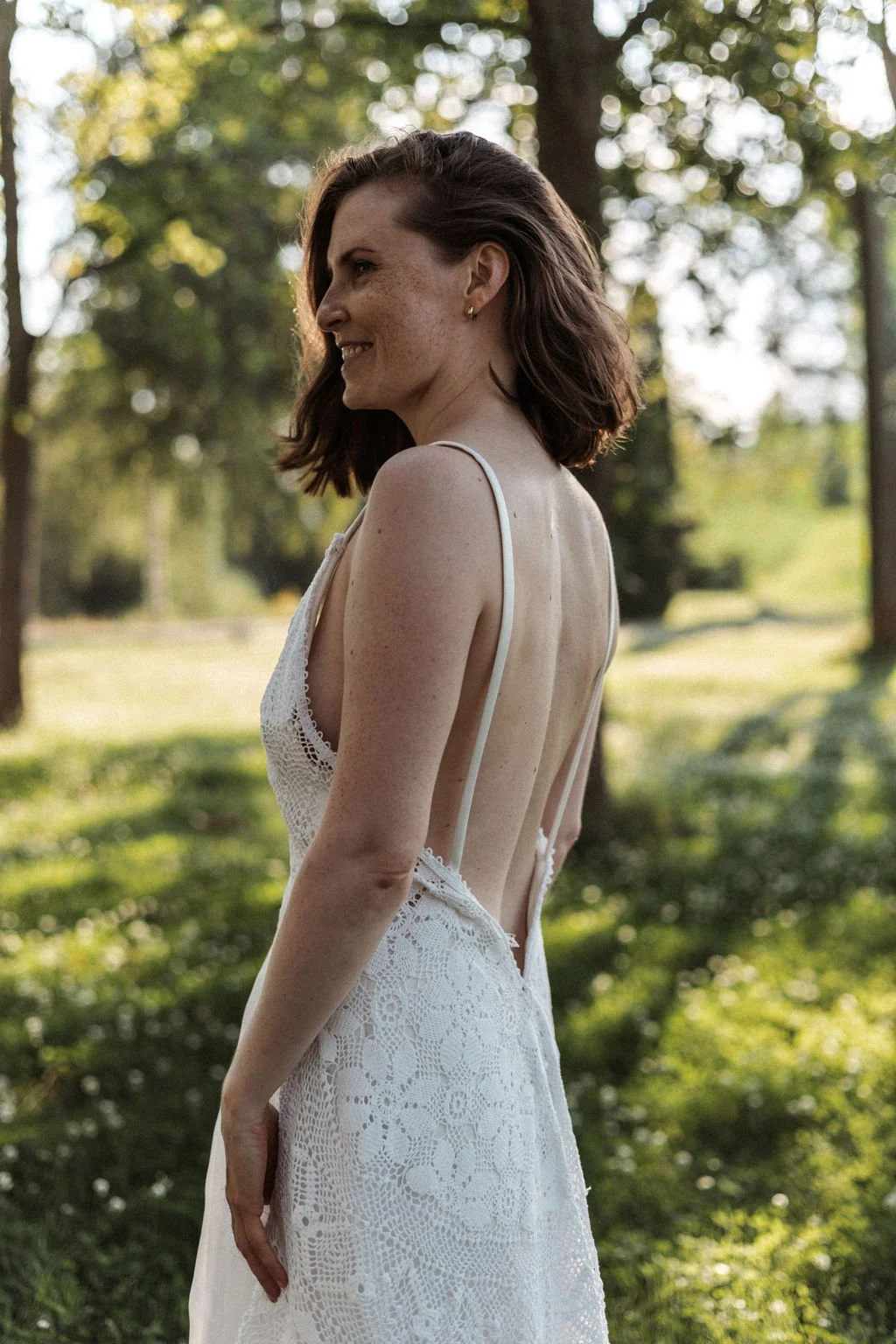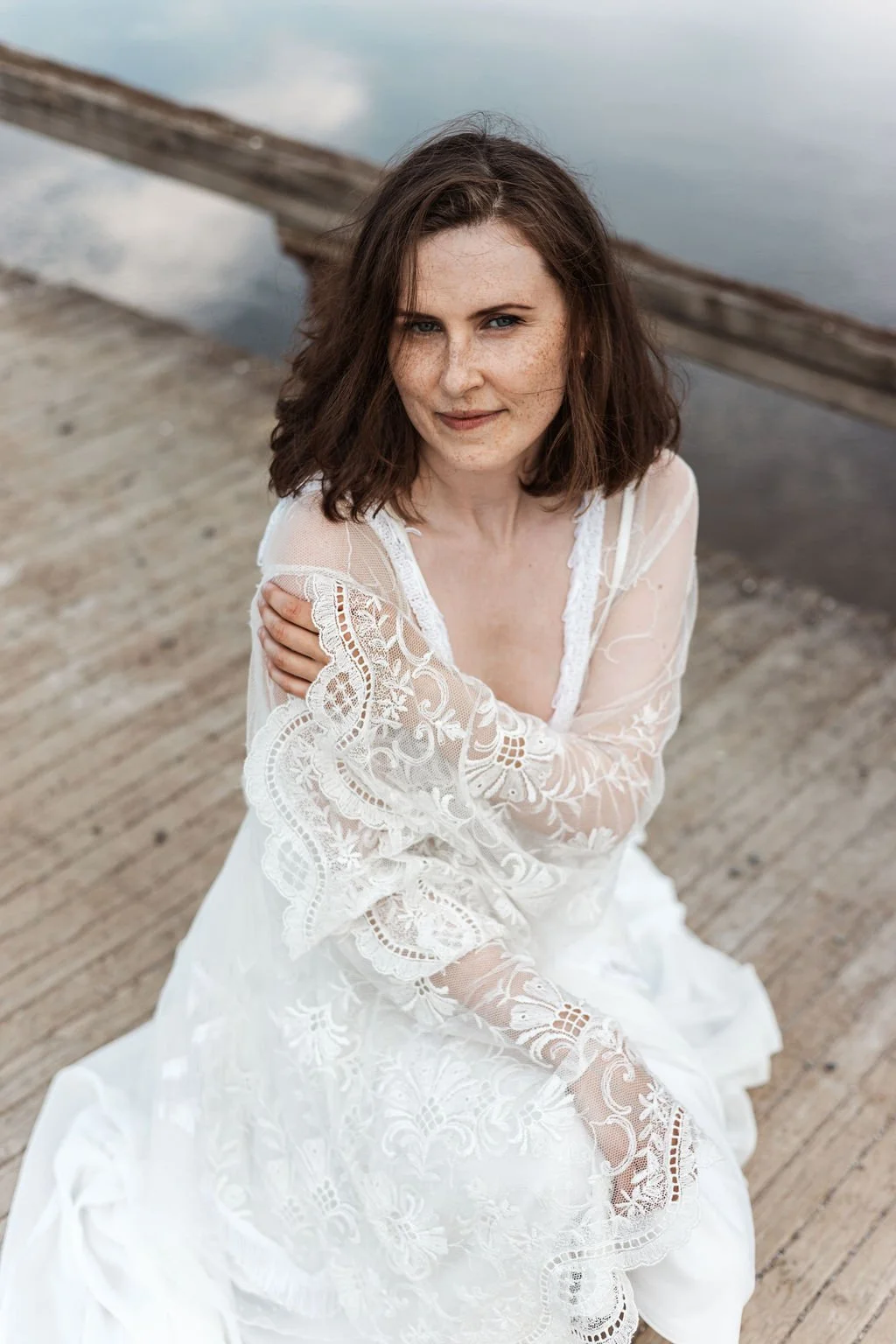 Saga hääpuku on käsintehty mestariteos,joka on valmistettu virkatuista päiväpeitosta sekä pöytäliinoista.Jokainen pitsikuvio on kuin sivu vanhasta tarinasta - yhdessä ne kietoutuvat uudeksi luvuksi morsiamen elämässä.